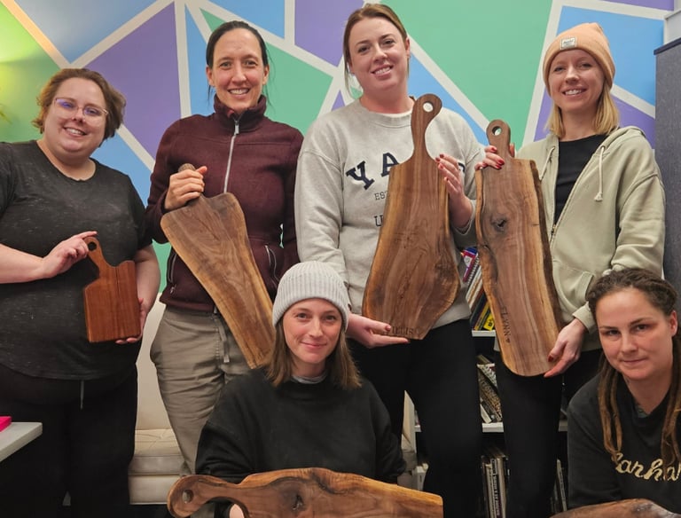 Learn woodworking fundamentals while shaping your own wooden charcuterie board using reclaimed wood.
