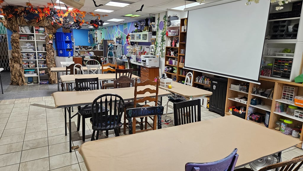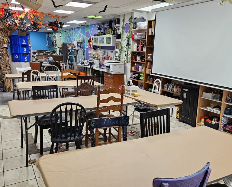 Whether you're looking for somewhere to assemble a large project, a spot to practice some new sewing skills, or maybe you'd just like to work on your latest hobby in a welcoming, inclusive, and community-focused space, we have the place for you.