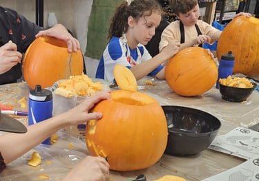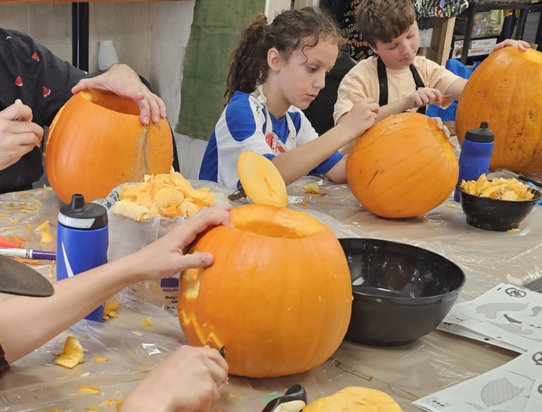 Save yourself the mess and make it here. We've got tonnes of tools, jack-o-lantern patterns, and buckets for guts disposal.